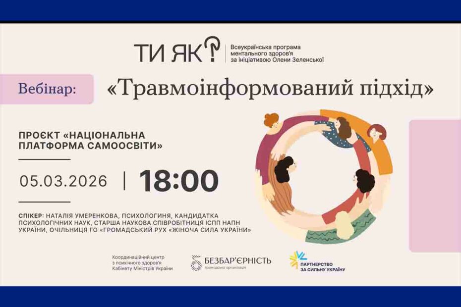 За ініціативи координаторки Всеукраїнської програми ментального здоров’я за ініціативи Першої леді України Олени Зеленської «Ти… Читати далі »ДЕНЬ СПІЛЬНОДІЇ «Університети + сервіси «Ти як?»