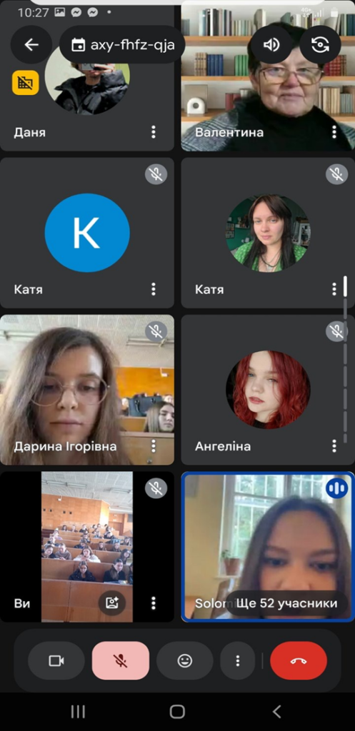У межах відзначення Всесвітнього дня психічного здоров’я проведено міжуніверситетську онлайн-зустріч за участі студентів спеціальності «Соціальна робота» Львівського національного університету імені Івана Франка, студентів-психологів Ужгородського національного університету та Хмельницького національного університету. Метою заходу було обговорення актуальних питань збереження психічного здоров’я фахівців допоміжних професій та формування культури професійної підтримки.