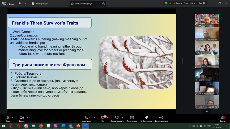 Доцент кафедри психології та педагогіки Хмельницького національного університету В’ячеслав ГАВРИЛЬКЕВИЧ узяв участь в онлайн-курсі «Розвиток резильєнтності в умовах тривалої кризи: нейробіологічні, клінічні та екзистенційні аспекти», який проводився щосереди з 21 січня до 25 лютого 2026 року в рамках проєкту “VELA” від провідних експертів із США.